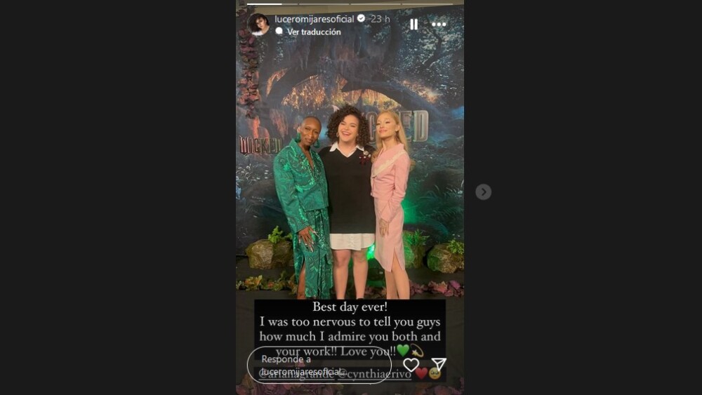 A través de sus historias de Instagram, Lucerito subió una serie de fotografías en donde se aprecian algunos aspectos generales de la alfombra roja de la premier de “Wicked” en México; se destacó en especial la postal en donde la cantante posó en medio de Ariana Grande y Cynthia Erivo.