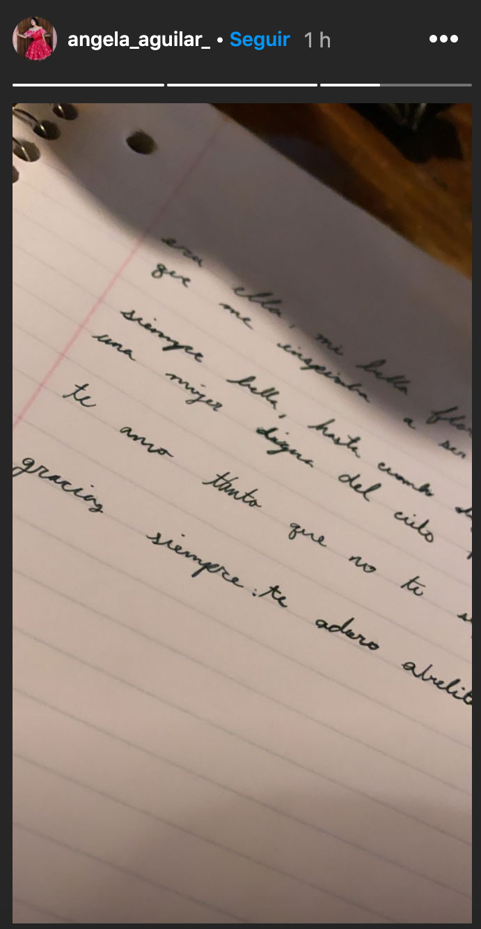 En su historia de instagram, la joven cantante también le dedicó una carta escrita por ella a su abuela.