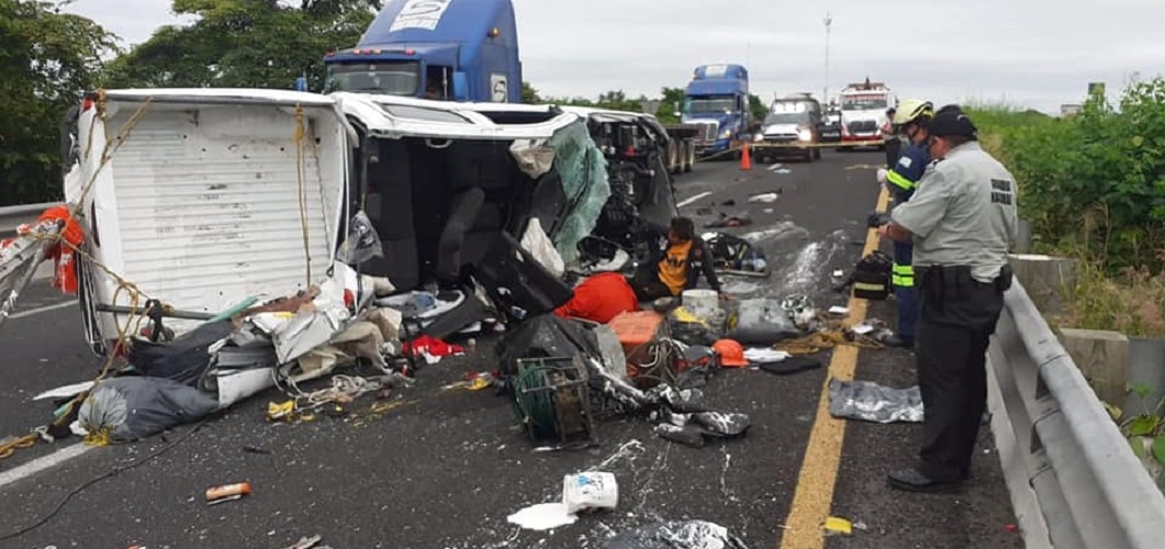 Un autobús de turismo volcó de costado en entronque de la autopista La Tinaja–Cosoleacaque y deja un saldo de 26 heridos y dos personas muertas; incluidos menores de edad, resultaron con lesiones y dos más murieron, según versiones son tres las personas que murieron, pero solo confirmaron dos.