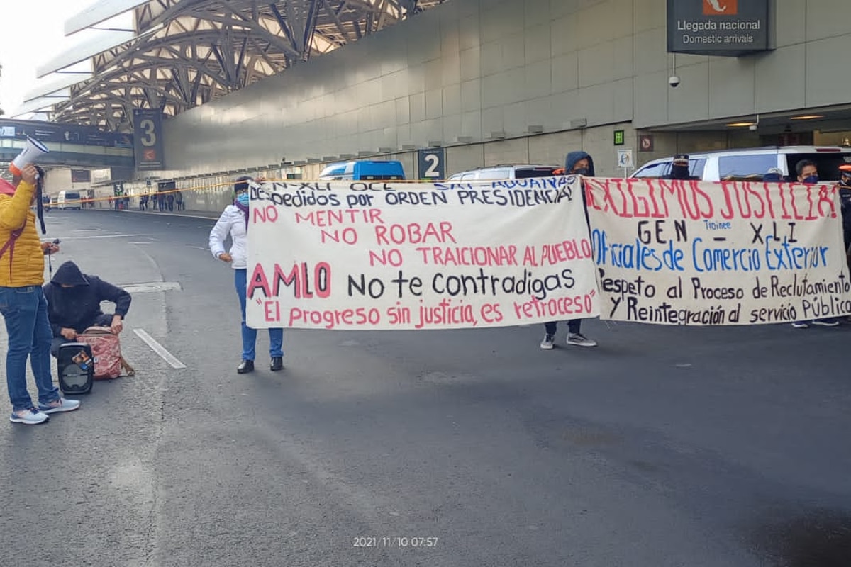 Un grupo de aproximadamente 50 personas bloquearon el acceso vehicular a la Terminal 1 del AICM desde la mañana del miércoles. Buscando establecer diálogo con autoridades para solucionar un supuesto despido injustificado.