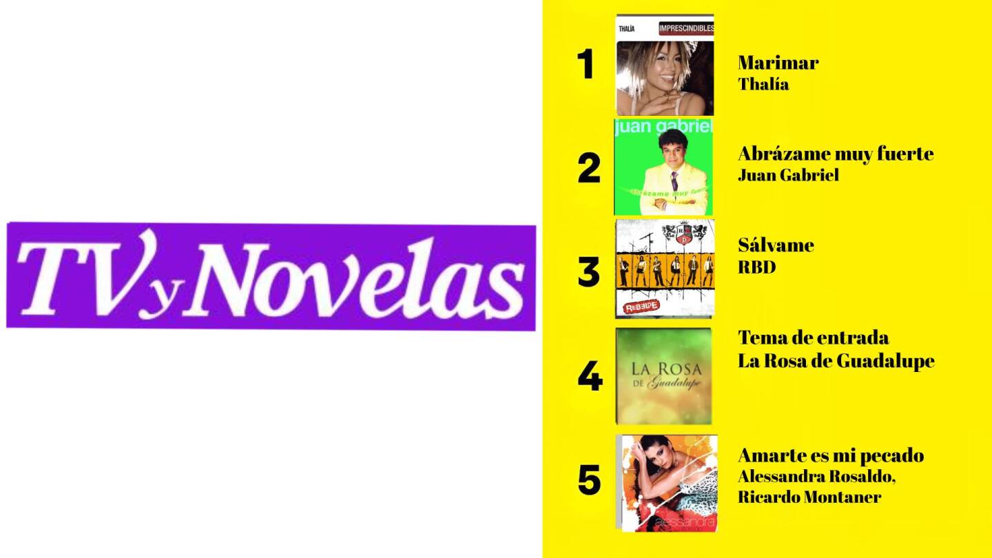 El primer lugar es “Marimar” de Thalía, por lo que la agregamos en ese mismo puesto en nuestro Wrapped. También aparece “Abrázame muy fuerte” de Juan Gabriel, tema de la telenovela homónima que catapultó a Aracely Arámbula como protagonista consagrada.