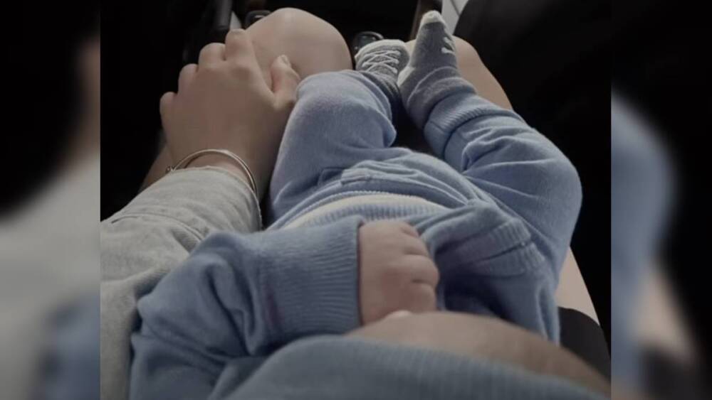 En la imagen, se ve al pequeño sentado en las piernas de su mamá, quien compartió la llegada de su bebé en agosto pasado, justo cuando el pequeño estaba cumpliendo un mes de nacido.