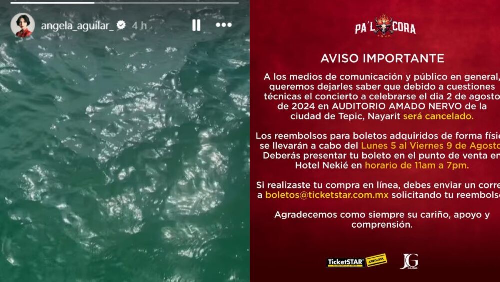 El comunicado que confirmó la cancelación del show indica problemas técnicos, pero al difundirse las imágenes de Nodal y Ángela en Los Cabos, los fans especulan que se trata de una coincidencia.