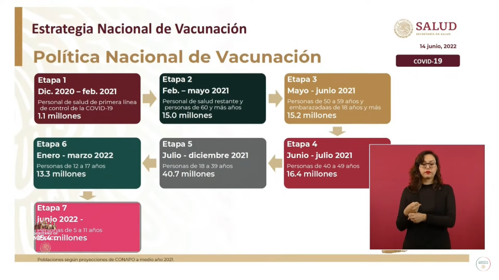 Se trata de la séptima etapa de vacunación que se lleva a cabo en territorio mexicano desde que comenzó la primera en diciembre de 2020, dijo el subsecretario de Salud de México, Hugo López-Gatell, en conferencia de prensa.