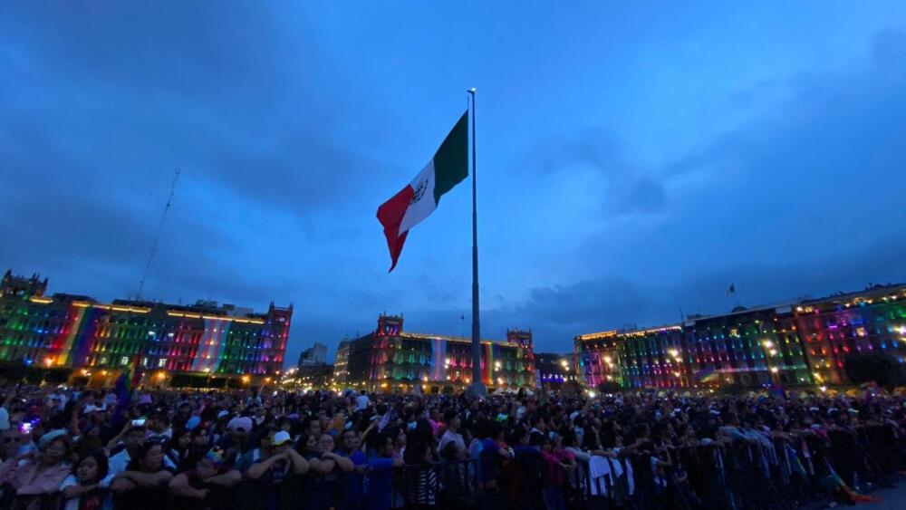 La noche, de este sábado 29 de junio, se iluminó de todos los colores del arcoirís y la bandera LGBTIQ+. Incluso hasta los edificios que rodean el Zócalo, incluso el Palacio Presidencial, rindieron tributo a la comunidad GAY, vistiendo las fachadas con color.