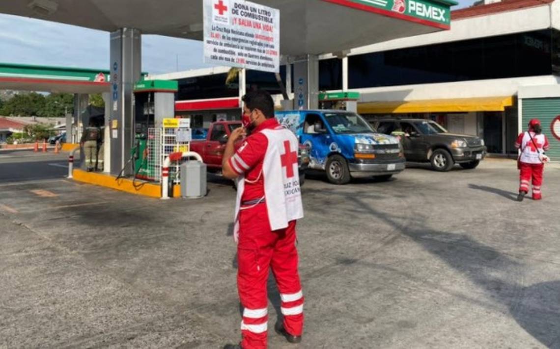 ZIHUATANEJO. Paramédicos, voluntarios y personal en general de la delegación de la Cruz Roja Mexicana en Zihuatanejo de Azueta, Guerrero, piden a los automovilistas donación de combustible para abastecer sus unidades y brindar auxilio a la población, principalmente por la emergencia a causa de la pandemia.