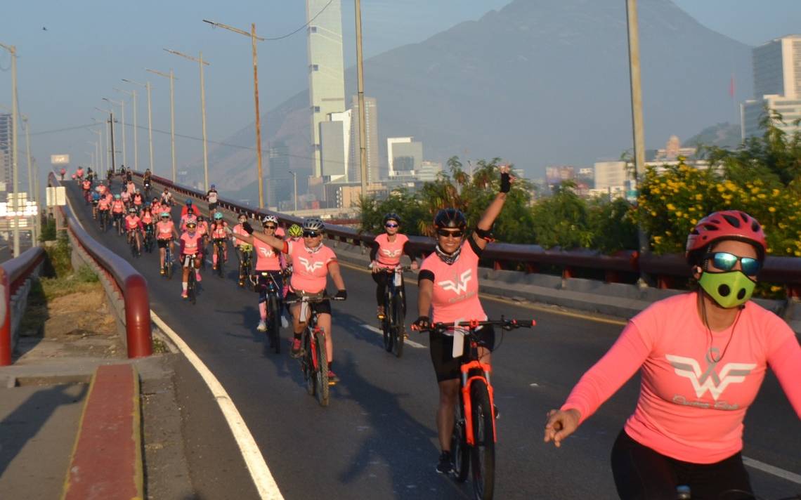 Las mujeres en sus bicicletas y vestidas con blusas en color rosa, tomaron el circuito deportivo facultado en los carriles exprés de las avenidas Constitución y Morones Prieto desde las avenida Revolución hasta Gonzalitos, para conmemorar el Mes de Sensibilización sobre el Cáncer de Mama.