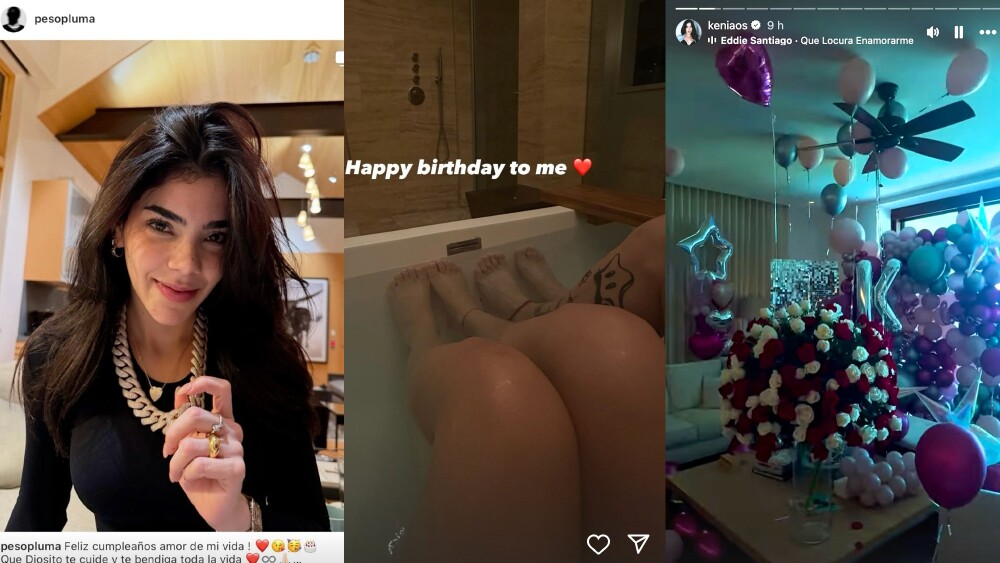 A través de sus historias de Instagram, la intérprete de Malas decisiones también mostró los lujosos regalos que recibió de Peso Pluma: compartió fotos de la habitación decorada con globos y enormes arreglos florales, mientras sonaba de fondo Qué locura enamorarme de ti de Eddie Santiago, una dedicatoria directa y romántica para Doble P.