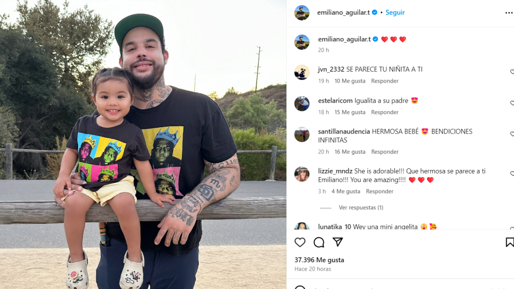 Emiliano Aguilar, el hijo mayor de Pepe Aguilar, sorprendió a sus seguidores al publicar en sus redes sociales adorables fotos junto a su hija, una pequeña de aproximadamente tres años de edad, fruto de su relación con una joven llamada Violeta.