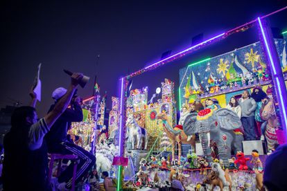 Esta tercia de reyes es una de las tantas agrupaciones de magos que se dejan ver en la explanada del Monumento a la Revolución en Ciudad de México. Antiguamente, este tianguis se hacía en la plaza de la Alameda central, a un costado del Palacio de Bellas Artes, a solo un kilómetro de donde están ahora. Para los niños eso no importa: acompañados de sus padres hacen fila para fotografiarse con los entes mágicos. Todos, eso sí, con mascarillas. Algunos incluso toman gel antibacterial del frasco de litro que descansa en la joroba del pequeño camello de plástico de Gaspar en uno de los escenarios.