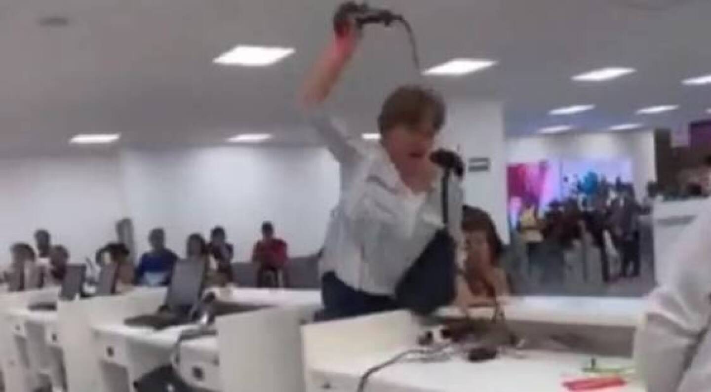 Fue a través de redes sociales que se viralizó la molestia de una señora de 56 años de edad, quien con gritos y groserías arremetió en contra de empleados del AICM y causó destrozos, rompiendo computadoras y teléfonos.