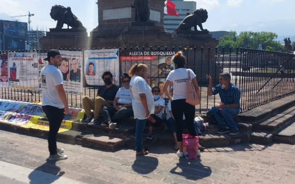 Integrantes del colectivo Todos Somos Uno se manifestaron en la explanada de Los Héroes, en Monterrey, para exigir que se cuente con más personal para seguir con la búsqueda de sus desaparecidos.