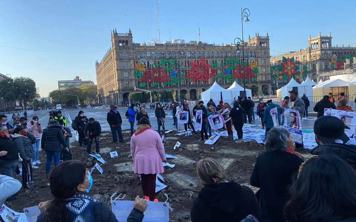 Colectivos que viajaron desde Guanajuato a la Ciudad de México recrearon una fosa clandestina en el Zócalo para protestar por los desaparecidos en informacion.center.