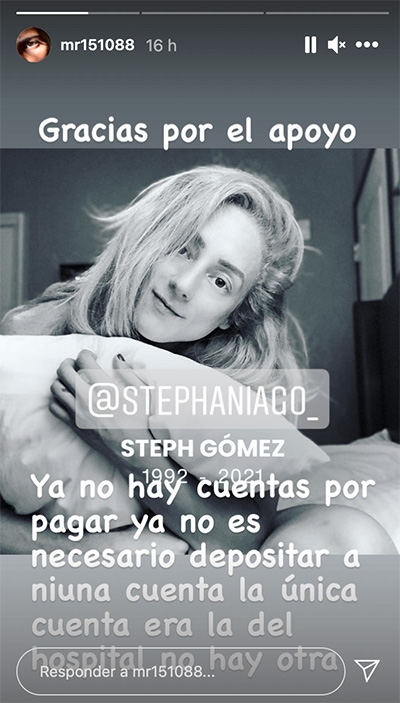 “Venga Coach! @stephaniago_ te estoy esperando y por ti soy fuerte y por ti no me estoy dejando vencer por la incertidumbre por qué tu me enseñaste qué hay situaciones y experiencias difíciles pero no imposibles y los límites se los pone uno mismo, que en cada competencia entregas todo y cómo siempre me da miedo verte competir me quedo atrás viéndote de lejitos xq me duele que te hagan algo, pero siempre regresas con una sonrisa y una luz única del fuego que proyectan esos ojos. Aquí estoy y te estoy esperando cabrona!”.