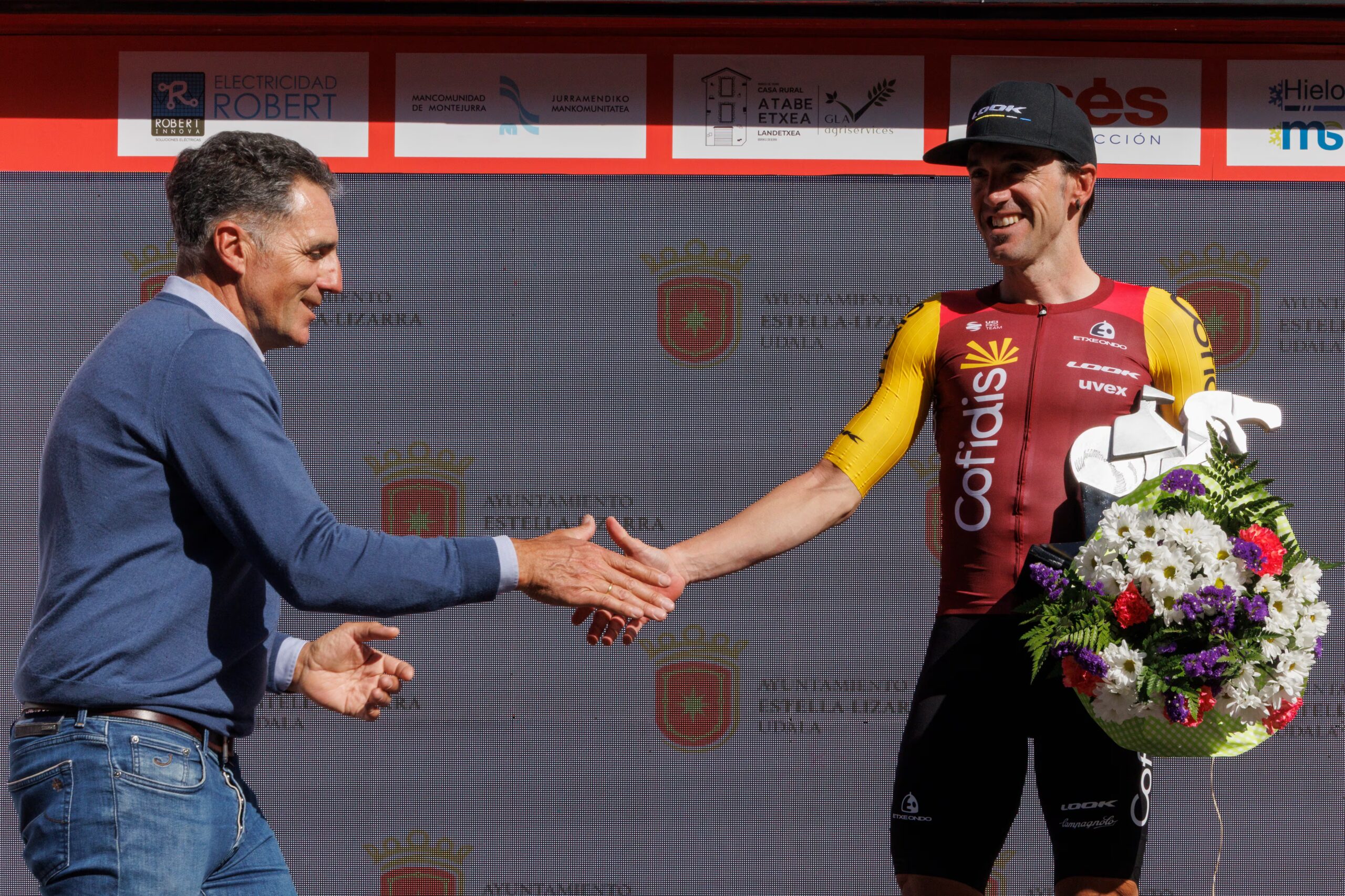 Aun los años que no gana en Estella, Izagirre, de 37 años, la goza en Estella. Su familia, su mujer, sus hijos de la mano por la plaza, un helado después de la carrera, y un saludo siempre a José Miguel Echávarri, que este año, justamente, ha faltado al carrera que pasa por su pueblo, Abarzuza, sale de los Fueros, aurresku con flauta y tamboril, al lado de la tienda donde vendía café molido el mítico amigo de Poblet Jesús Galdeano, bautiza Indurain y financia como puede su amigo Oreja. Echávarri, el director, inventor del Reynolds y creador del Banesto, que hizo triunfar en el Hollywood de la bicicleta al ciclismo español, se recupera de una operación de espalda, pero aplaude desde su casa en Pamplona uno de los pocos gritos de victoria que puede exclamar el ciclismo español, más que silencioso, mudo, en los comienzos de 2026.
