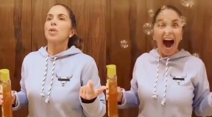 En el clip podemos ver a la también actriz haciendo un reto viral conocido como el Lip Bubble Challenge, que consiste en colocar jabón o champú en los labios para luego soplar y hacer burbujas.