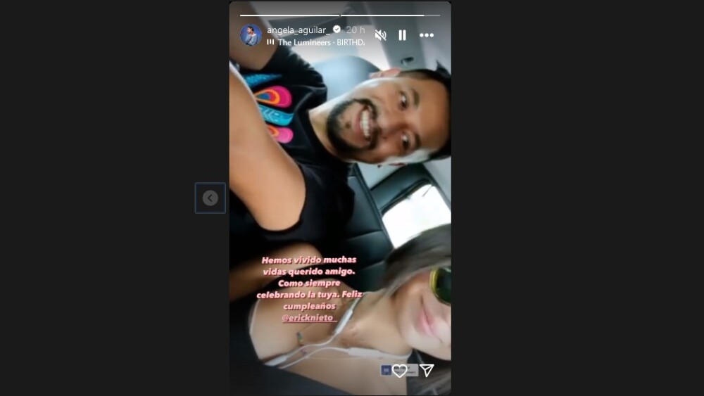 Hace unas horas, Ángela Aguilar publicó un reel a través de sus historias de Instagram en donde se dejó ver a bordo de un auto al lado de un joven sonriente a quien le dedicó un mensaje por su cumpleaños.